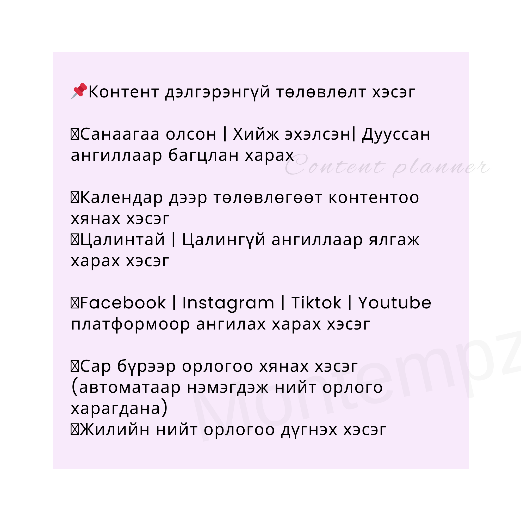 Төлөвлөгчөө сонгоод сагсандаа хийж шалгаад