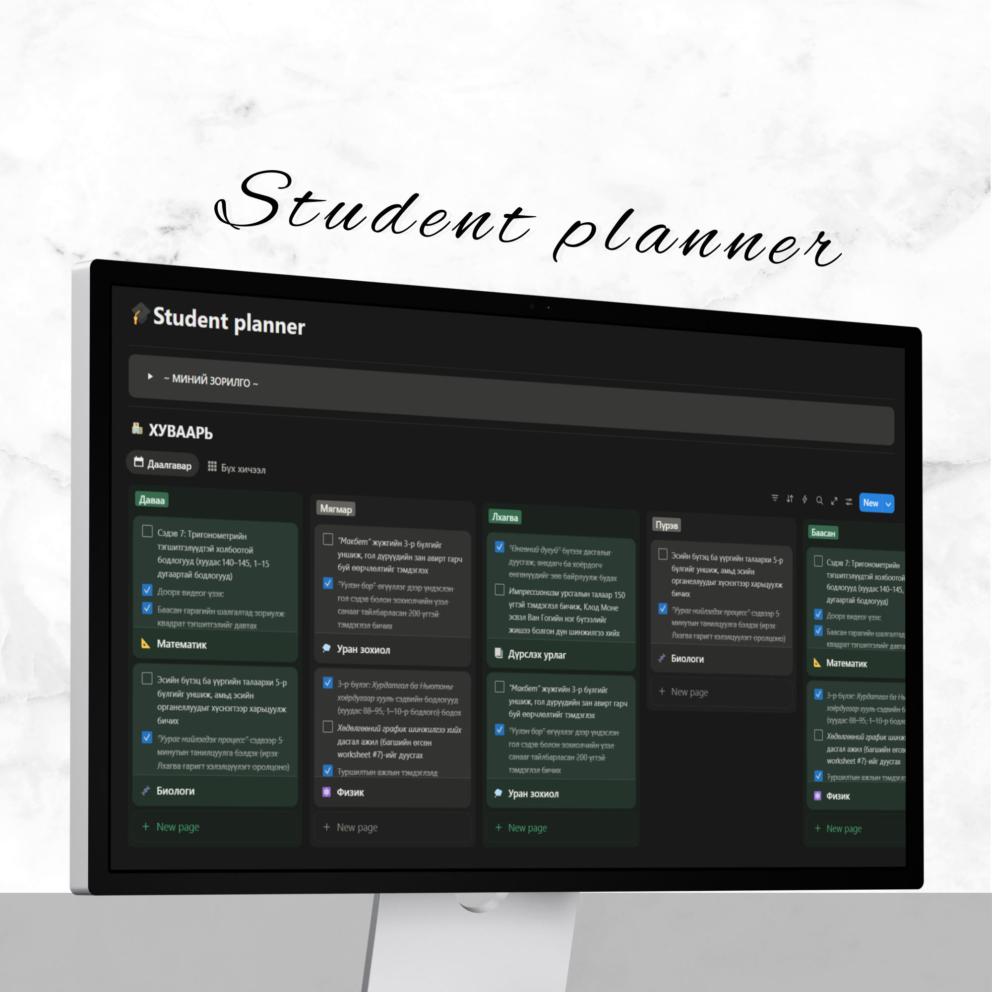 Төлөвлөгчөө сонгоод сагсандаа хийж шалгаад
